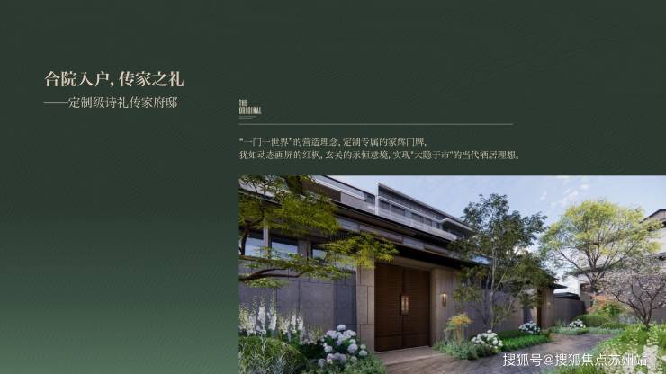 社区整体分为南北两个区域,北边是洋房,南边是合院。归家之路有三重礼仪空间:第一重是礼仪门厅,第二重是天地院落,第三重是生活雅院。整个社区还融入了九处充满诗意的东方园景,营造出浓厚的东方礼序氛围。